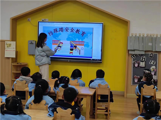 安全教育,防患未然。演练前各班教师采用故事、操作示范等多种形式,对幼儿开展了预防拥挤踩踏的专题教育,让幼儿充分认识发生踩踏事故的主要原因和严重后果,提高幼儿的安全意识,掌握防范措施。