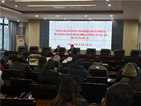 四川新闻网消息 为进一步保障彭山区新冠病毒抗原检测试剂质量安全,压实企业质量安全主体责任,2月21日,彭山区市场监管局结合“春雷行动2023”召开了新冠病毒抗原检测试剂经营企业集中约谈会,对全区50余家新冠病毒抗原检测试剂经营企业和连锁公司负责人进行集体约谈。