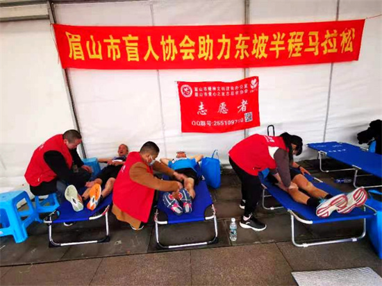 在眉山市精神文明办的指导下,眉山市志愿服务联合会、眉山市爱心之友志愿者协会携手眉山市盲协助力东坡半程马拉松。