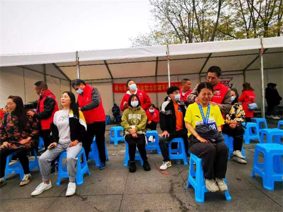 其中有来自各区县盲协的30名视障按摩技师志愿者在比赛终点为完赛的运动员进行了体能恢复推拿按摩志愿服务,这充分体现出团结、互助的志愿精神,对外充分展示了眉山志愿者形象。