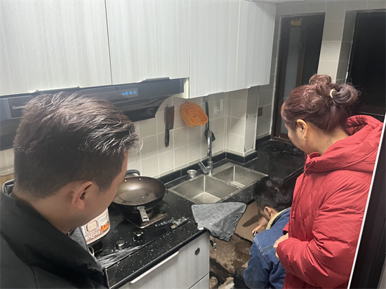 到达现场后,李阳通过查看楼上楼下两个厨房的情况,基本可以得出结论是楼上业主厨房防水未做好从而导致的张某家中橱柜燃气灶泡水。张某要求对方原价赔偿橱柜和燃气灶损失近四千元,起初楼上业主并不认同赔偿内容,经李阳一番协调后,最终对方同意赔偿橱柜损失一千余元,双方达成一致,握手言和。