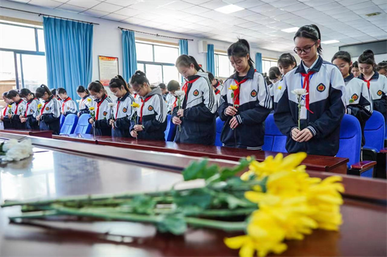 “断头今日意如何?创业艰难百战多。 此去泉台招旧部,旌旗十万斩阎罗……”4月4日,眉山市彭山区第三中学同学们正在诵读红色诗词《梅岭三章》。此外,在该校阶梯教室里,师生们手拿鲜花面对大屏幕低头默哀,他们正通过四川英烈网开展网上祭奠活动,以此表达对革命先烈、时代英雄的敬仰和追思。