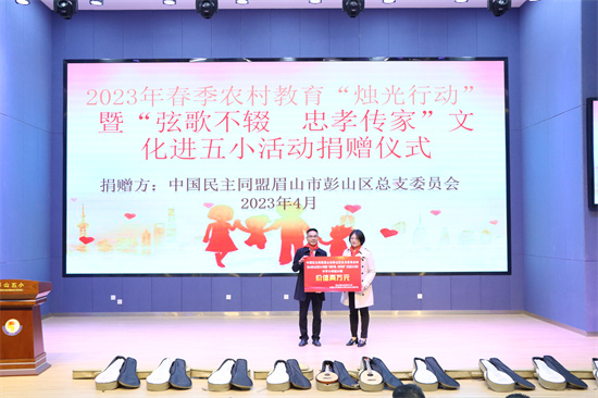 四川新闻网消息 2023年4月4日上午,民盟彭山区总支一行来到彭山五小,开展2023年春季农村教育“烛光行动”暨“弦歌不辍,忠孝传家”文化进五小活动捐赠仪式。