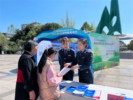 洪雅县税务局党委书记、局长谢剑波表示,下一步,洪雅县税务局将以提升纳税人缴费人满意度和获得感为着力点,进一步深化税邮合作,点对点将税收感谢信送到纳税人手上,推进税收宣传回廊巡展进入洪雅县柳江古镇、七里坪、瓦屋山景区,围绕个人所得税综合所得汇算申报操作指引、新生儿参保最新政策口径、税收优惠政策咨询热点等,“手把手”“近距离”助力纳税人缴费人便利办税再升级、税享服务再优化。(供稿:洪雅县税务局 郭琳莹)