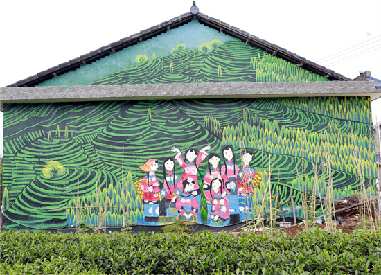 “这些画,把我们中山的茶文化很好地展现出来了,很开心,而且这个画画得也很好,我们自己看起来也很舒心,也会想说要把房前屋后打扫干净,这样才配得上我们这么好看的画。”今年67岁的中山镇前锋村村民刘大爷说道。