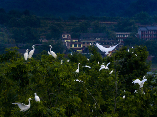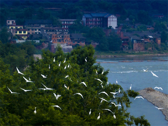 千只白鹭栖息岷江河畔