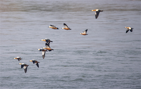 赤麻鸭嬉戏岷江上