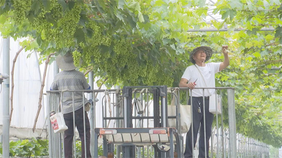 棚顶有“天膜”,地面有“地膜”,水肥六根管,数据实时测……环顾棚内发现,实时监控摄像头、农事指标高精度传感器、滴灌设备等设施,已经成为葡萄棚标准配置。