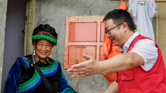 “阿支,我来扶你上车吧。”青年党员梁文科穿着红马褂,来到距离县城10公里以外的小村庄,见到了彝族妇女阿支布哈。