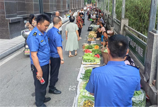 疏堵结合引摊入市。在小南街城南商业广场北面设置农户产品自产自销疏导点,引导西正街占道经营的菜农及各类流动摊贩300余人次至城南农贸市场和小南街农户产品自产自销疏导点规范经营。