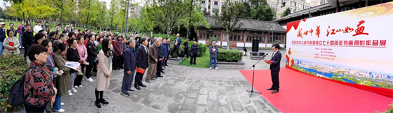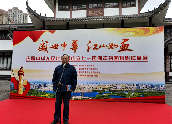 四川新闻网消息 翰墨颂盛世,丹青绘新篇。10月19日,眉山市老年书画摄影展开幕式在苏辙公园举行并正式开展。本次书画摄影展展出书法、绘画、摄影和诗词作品133余件。参观者众多。