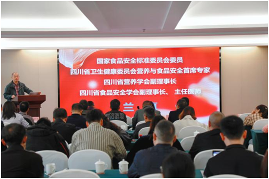 会议特邀国家食品安全标准专家、四川省食品安全专家委员会副主任兰真和省食品安全标准专家林黎主任医师联合主讲《食品标签标识与职业打假》,并现场互动释疑。