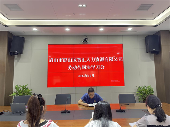 四川新闻网消息 为实现全面依法治国,推进法制中国建设,10月30日,眉山市彭山区智汇人力资源有限公司开展学习了《合同法》《劳动合同法》学习会,公司全体成员参加此次会议。