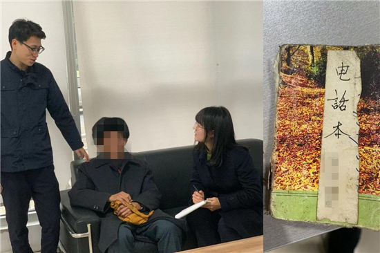 在等待警员到来过程中,工作人员多次尝试和老人沟通交流,希望能获取到家属信息,最终在老人包里找到一个电话本,由此联系上老人家属,告知了老人目前情况,并获知老人患有轻度阿尔茨海默症。在等待过程中,工作人员全程安慰陪伴老人,并为老人提供食物充饥。