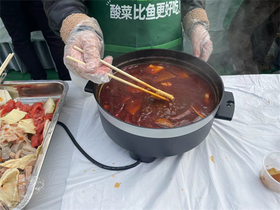 12月9日上午,在眉山万达广场,众多“好吃嘴”聚集吉香居设点摊位,感受着寒冬中,一股香气扑鼻的火锅味,在众多口味火锅前驻足试吃。