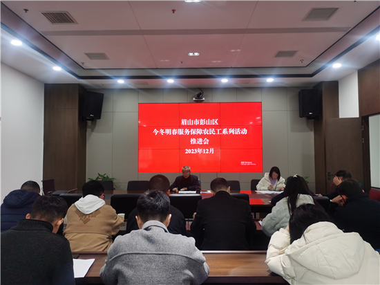 四川新闻网消息 为全面落实省、市关于做好农民工服务保障工作文件精神。近日,眉山市彭山区人社局牵头组织召开今冬明春服务保障农民工系列活动推进会,区总工会、团区委、区农业农村局等区级相关部门分管领导、中国邮政彭山分公司主要负责人和各镇(街道)分管领导20余人参加会议。