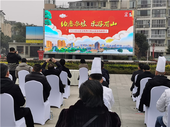 启动仪式上,市文广旅局局长王枫现场推介了“玩转冰雪温泉”“品味三苏文化”“享尽乡村美食”“逛玩古镇民俗”等4条2024眉山迎春购物月精品旅游线路以及全市景区景点32个丰富多彩的文旅活动,吸引游客前去打卡旅游,还有各种景区游玩项目优惠活动,让市民游客们在探寻历史文化、欣赏自然风光的道路上,也能感受到实实在在的实惠。