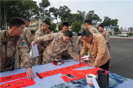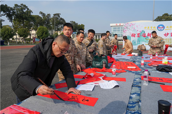 本次活动不仅给营区带来了喜庆祥和的氛围,增添了红红火火的新春色彩,更丰富了官兵们的军营生活,生动体现了军地的浓厚情谊,浓浓的墨香为大家送来了冬日里的融融暖意。(供稿:彭山区委宣传部 刘小兰 王莘茹)