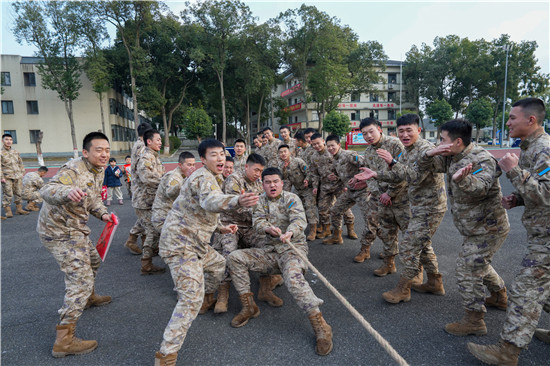 官兵们互相比技巧、看协作,穿梭于各个趣味活动区域,整个活动现场欢呼声此起彼伏,处处洋溢着军民鱼水情深的欢乐氛围。