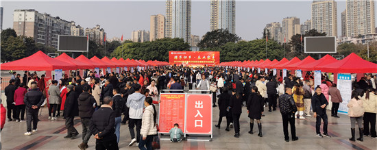 四川新闻网消息 2月19日,在四川省眉山市洪雅县生态广场,一场“游子归乡·乐业家乡”2024年春风行动暨就业援助月专场招聘会热闹非凡,众多返乡过年的务工人员纷纷到场寻找合适的就业岗位。