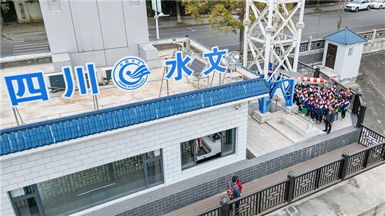 彭山鹏利小学学生参观水文站。(翁光建 摄)