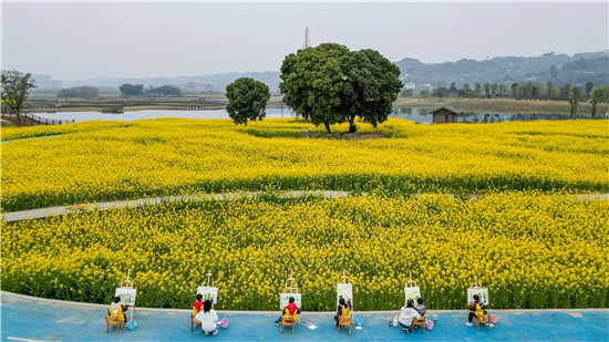 “小朋友们,油菜花应该怎么画呀?大家先看看它的颜色,闻闻它的花香,再摸摸它的形状……”在彭祖新城湿地公园,彭山区学院路幼儿园的小朋友们正在开展以“亲近自然,保护生态”为主题的绘画形式的开学第一课。