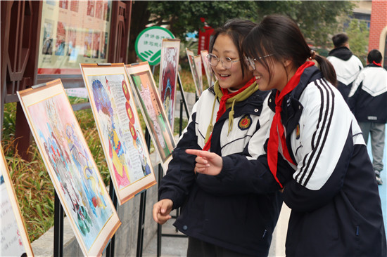 彭山三中学生参观爱国主义画展。(翁光建 摄)