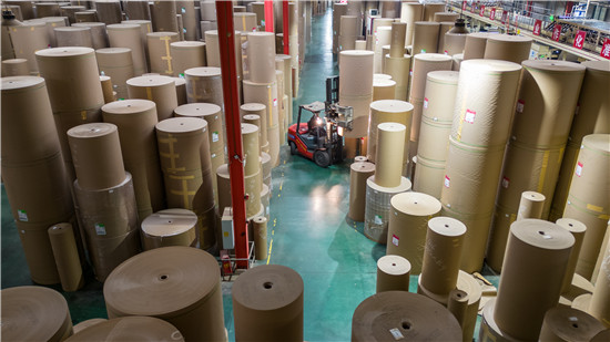 走进车间,自动化高速瓦楞纸生产线正在飞速运转,一卷卷原纸经过压制瓦楞,上胶,分纸压线等工序后迅速被加工成一张张平整度高、楞尖饱满的瓦楞纸板,工人们忙碌着打包入库,各项工序有条不紊。