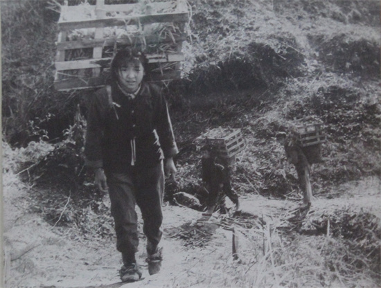 上世纪60年代,人们背树苗上山。洪雅县国有林场 供图