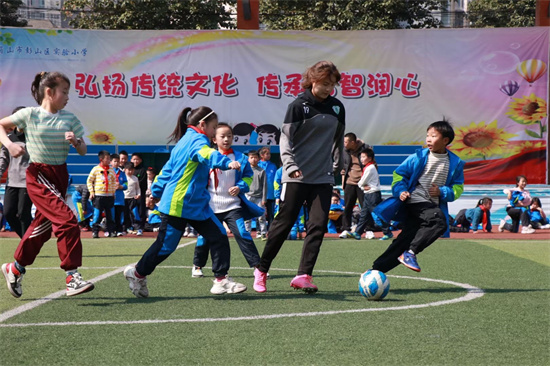 授牌仪式结束后,来自四川师范大学体育学院女子足球队的球员代表同实验小学足球队进行了一场别开生面的足球友谊赛,还与实小学生热情互动,获得了在场所有师生、家长的呐喊和掌声。