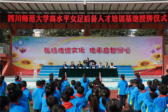 四川新闻网消息 为进一步培养学生对足球的热爱与专业技能,促进学生全面发展。3月14日,“四川师范大学高水平女足后备人才培训基地”授牌仪式在眉山市彭山区实验小学举行。