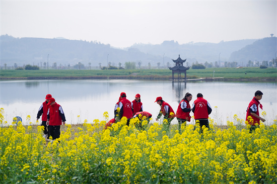 随后,学校还组织部分学生前往彭山区五湖四海湿地公园开展爱河护河行动。同学们身穿志愿者服,手拿垃圾袋和钳子,分工合作,紧盯河道清理重难点,仔细清理各种塑料袋、食品包装盒、饮料瓶等白色垃圾以及水面漂浮物和隐藏在草丛深处的烟头、纸屑等垃圾。