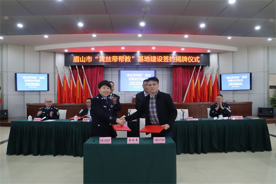 仪式上,魏传讯介绍了“黄丝带帮教”及场所工作相关情况。民盟眉山市委会与眉山市司法局和四川省眉山强制隔离戒毒所分别签订合作协议,并对“眉山市社区矫正警示教育基地”和“眉山市黄丝带帮扶教育基地”进行了授牌。