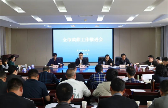 会议传达学习民政部部长陆治原同志莅眉调研讲话要求和全省殡葬领域行风建设会议、全省社会事务暨清明节祭扫服务保障工作会议精神,调度全市殡葬领域跨部门综合监管、生态安葬试点及火葬区范围调整后续工作等推进情况,安排部署全市殡葬领域行风建设和清明祭扫服务保障工作。