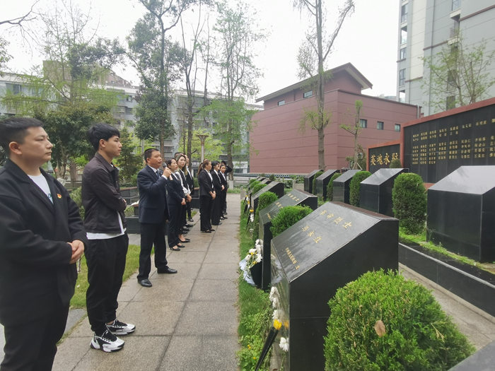上午9时,在蒙蒙细雨中,全体人员神情肃穆,怀着无比崇敬的心情,举行庄严肃穆的祭扫仪式。奏唱国歌后,全体人员向革命烈士默哀鞠躬致敬,接着向人民英雄纪念碑敬献花篮,深切缅怀为祖国解放事业和革命事业奉献终生的先烈。随后,红色宣讲员李洪开展革命事迹宣讲活动,介绍彭山红色历史文化,以现场微党课的形式回顾了革命英烈的峥嵘岁月,让大家接受了一次深刻的革命传统教育和思想洗礼。