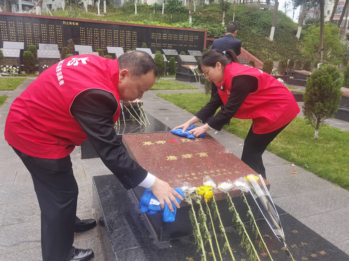 最后大家纷纷上前擦拭烈士墓碑、烈士英名墙等烈士纪念设施,对园内环境卫生进行再清理,用心诵读先烈英名,向每一座烈士墓敬献鲜花,以实际行动表达哀思和敬仰之情。