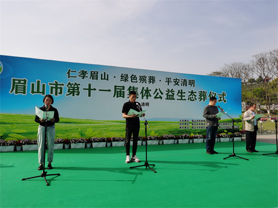 四川新闻网消息(吕伟利 郑佳洁 摄影报道)不点蜡烛、不烧纸钱、不留骨灰,长伴山林里,长眠鲜花中。4月2日上午,由眉山市民政局主办的“仁孝眉山·绿色殡葬·平安清明”主题活动暨眉山市第十一届集体公益生态葬活动仪式在莲花公墓举行。