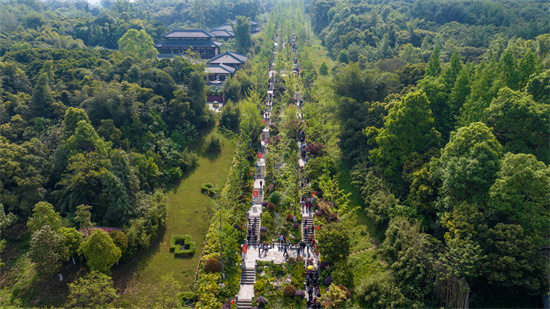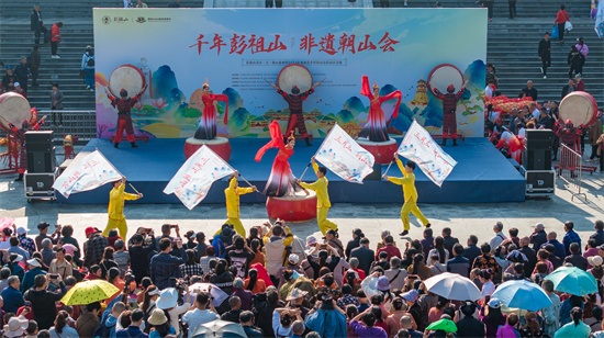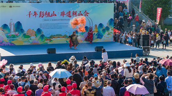 四川新闻网消息 “朝山大庆、登山祈福、民俗盛宴、戏曲进乡村、万人朝山盛况”4月11日再次在眉山市彭山区彭祖山景区上演。当天恰逢农历三月初三,彭山区彭祖山三月三非遗朝山会暨2024年戏曲进乡村活动在此举行。活动吸引了成都、重庆、乐山等地的众多游客和本地市民齐聚彭祖仙山,共同参与见证彭祖山景区一年一度最为热闹,场面最为隆重的非遗民俗盛宴。