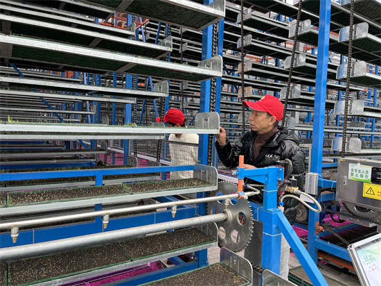 近日,在青衣江流域粮食现代农业园区柳江—东岳示范片的综合农事服务中心,县农牧业科技教育与技术推广站高级农艺师李世洪一行正在育苗中心查看秧苗长势,这里的水稻育秧不但实现了流水化生产,秧苗还坐上了“电梯”。一个个秧盘循环式智能育秧机内就像坐上了电梯一样,不断循环转动,变换采光、补湿……