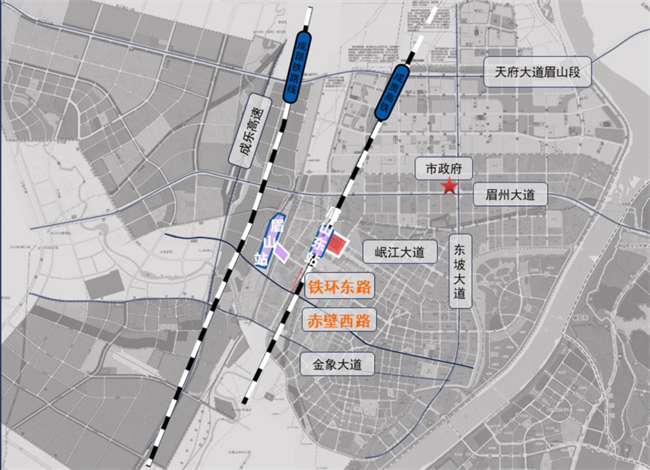 眉山市综合交通枢纽项目是眉山依托眉山东站、眉山站两个地处中心城区的重要铁路站场,打造以高速铁路、干线铁路、城际铁路、市域铁路、班线客运、城市公交等为一体的重点交通项目。