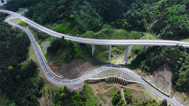 同时,路基工程位于山腰之上,全线最高边坡有66米,共7级。高边坡段上有国家电能输送大动脉,下有4个电站;且高边坡地质为冰啧层,是孤石堆积而成,造成高边坡段施工难度大。“为保证安全可靠施工,施工单位成立专门的高边坡攻坚克难小组,制度精细化施工方案,为了保障工期施工还采取人员轮换休息、车辆机械不休息方式,‘抢晴天、战雨天、白加黑、五加二’来打赢这场硬仗。”邓庆说。