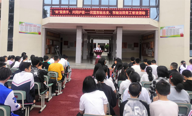 四川新闻网消息 4月29日,民盟东坡区总支联合东坡区人民法院青年工作委员会到松江初中开展“普法活动进校园 护航青春伴成长”法治教育课活动。