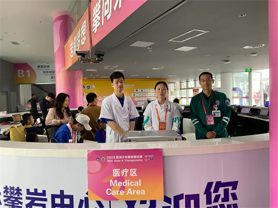 “攀岩运动强度大,运动员随时都会出现受伤情况,这种瞬息万变的状况对医务人员来说也是很大的考验。”王欣介绍,运动员若在赛场出现伤病,医护人员会第一时间对其救治,若伤势较重,由现场待命的救护车迅速转移至医院。