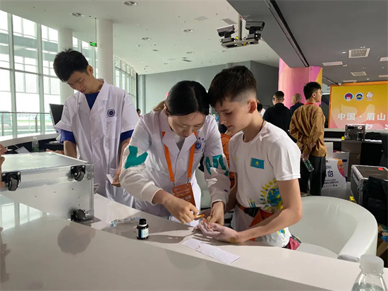 为提升医疗救治及医疗转运能力,场馆内共设置了2个医疗站,安排了2辆救护车将进行统一调度指挥,确保医疗救治及时有效。眉山市中医医院、眉山市人民医院、眉山市心脑血管病医院和市妇女儿童医院还建立了亚少赛绿色就医通道,保障赛时门诊、急诊、康复转院等医疗救治工作。“我们从4家定点医院选拔了200余名医疗骨干作为场馆的医疗保障人员,对他们进行相关培训,并做了伤情预判,在岷江东湖饭店和市行政学院还分别安排了两组医护人员24小时随时待命,提供了应急医疗保障。”眉山市卫健委副主任徐荣说。