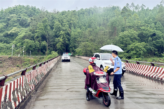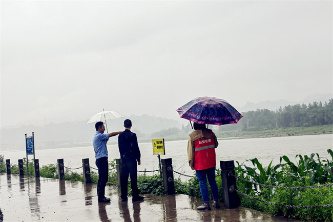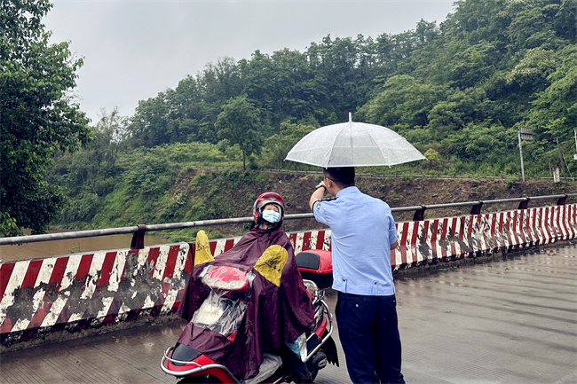 在巡查过程中,他们还特别注意了沿江地区的安全隐患。看到江边的警示标志被风雨吹倒,他们立即上前扶起并加固。遇到有居民在江边逗留,他们会耐心劝离,并提醒居民注意雨天安全。