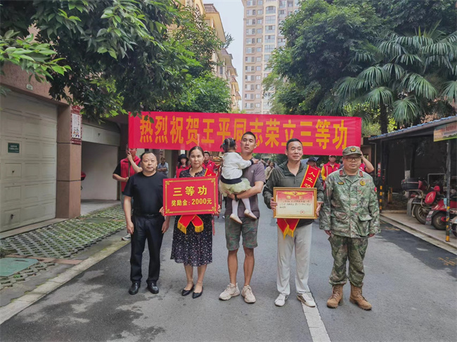 四川新闻网消息 5月9日,阳光明媚,微风和煦。为更好地弘扬拥军优属优良传统,激发现役官兵扎根部队、建功立业的热情,在“母亲节”来临之际,眉山市彭山区双拥办组织,区退役军人事务局、区人武部、区退役军人801橄榄绿志愿服务队参与,为荣立三等功的现役军人王平、魏秦武等两人家属送去立功喜报、慰问金和亲切问候。
