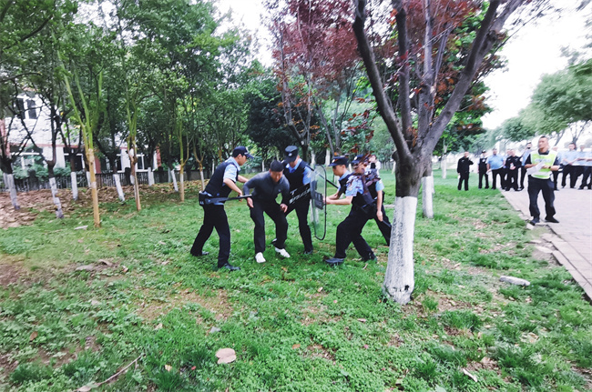 “红军”战队迅速行动,分工明确,有的负责疏散群众,有的负责与“蓝军”周旋,有的则负责寻找合适的时机进行抓捕。经过一番激烈的较量,“红军”成功将“蓝军”“嫌疑人”制服。