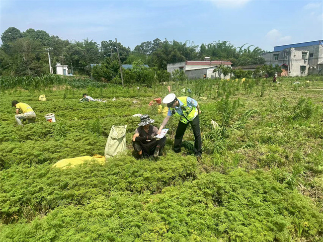 为了织密农村交通安全网,让安全意识深植民心,大队走进田间地头向群众讲解酒驾醉驾、无牌无证、骑乘电动车和摩托车不佩戴安全头盔、驾乘机动车不系安全带、农用车违法载人等常见交通违法行为的危害,警示教育广大群众时刻紧绷安全弦,牢固树立安全出行理念。