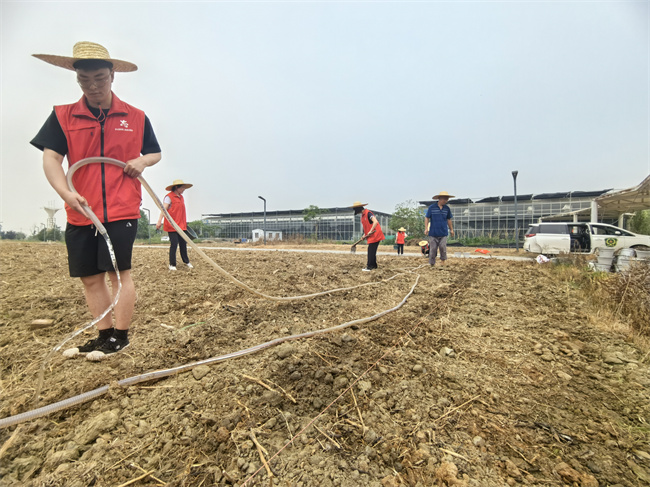 四川新闻网消息 眼下,正是农忙时节,为助力粮食生产工作,充分发挥退役军人在乡村振兴中的作用,5月17日,彭山区退役军人橄榄绿志愿者们来到公义镇新桥村开展“助力农业生产·守护粮食安全”志愿活动,把志愿服务送到生产一线,帮助退役军人种粮大户及缺乏劳动力的家庭种植玉米,抓农时,保收成。