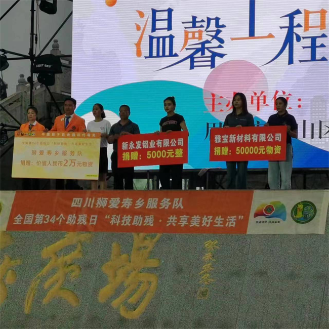 现场捐赠活动更是将活动的氛围推向了高潮。雅保四川新材料有限公司、新永发铝业有限公司作为爱心企业代表以及狮爱寿乡服务队,向残疾人群体捐赠了善款,用于支持残疾人事业的发展。这一善举不仅体现了企业的社会责任感,也激励了更多的人参与到助残事业中来。